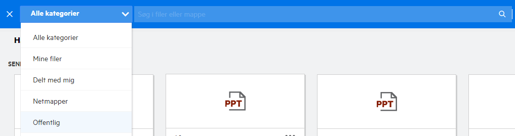Filer og mapper, der findes i området Mine filer, er som standard kun synlige for dig. Administratoren angiver dine delingsrettigheder til Mine filer.
