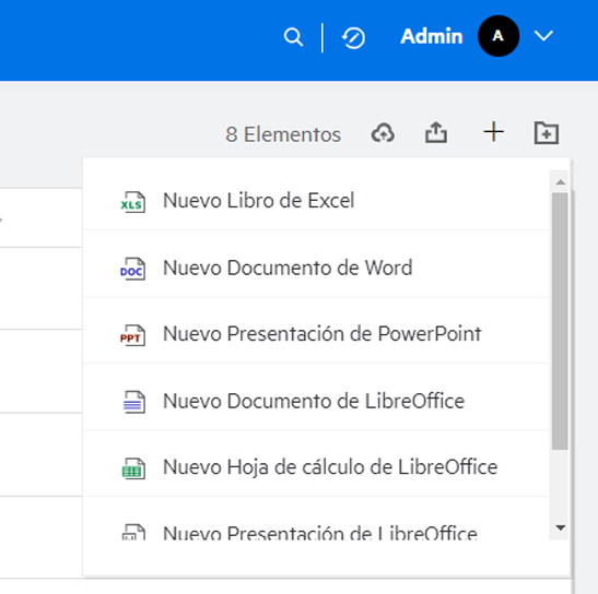 Ahora puede editar las plantillas personalizadas o crear un archivo nuevo en Filr. La opción Crear nuevo archivo solo está disponible para Advanced Filr Edition y el administrador debe habilitar Content Editor. En las áreas Mis archivos y Carpetas de red, puede encontrar esta opción en el nivel raíz y de carpeta; en el área Compartidos conmigo y Compartidos por mí, encontrará esta opción solo en el nivel de carpeta.
