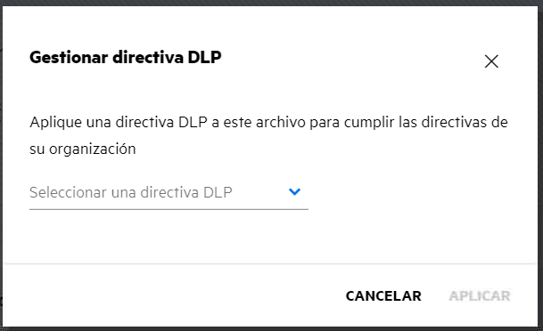 Si se ha habilitado la función DLP y no se aplica una directiva en el nivel de carpeta de red, el botón Directiva DLP aparecerá sobre la pestaña Detalles. Puede hacer clic en este botón, seleccionar una directiva y aplicarla al archivo.