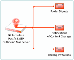 Filr includes a Postfix mail server for outbound email notifications, as illustrated in Figure 6-1.