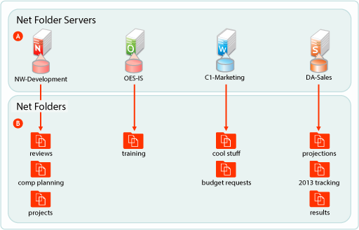 A Net Folder is a pointer or reference to a specific folder within a Net Folder Server.