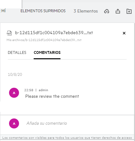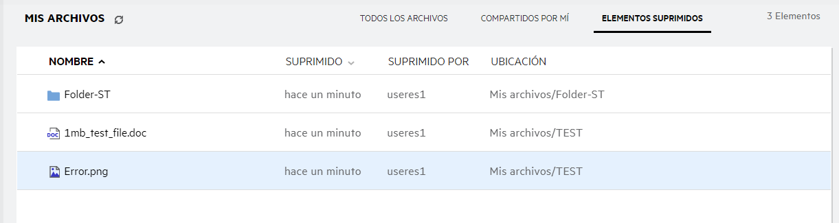 Suprimido por: información del usuario que ha suprimido el elemento.