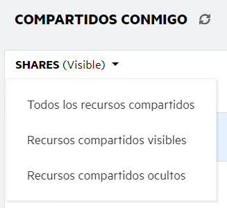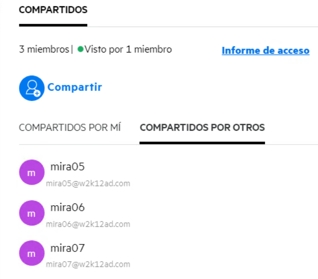 Compartido por: usuarios que compartieron el elemento con usted. Si son varios los usuarios que compartieron un elemento determinado con usted, se muestran todos.