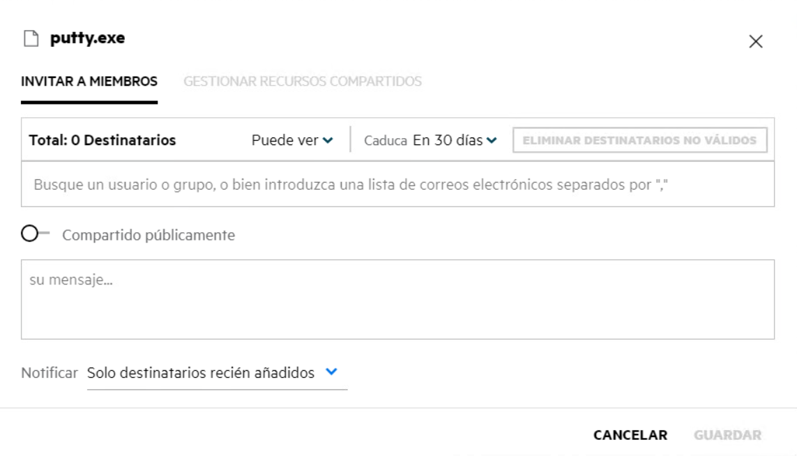 Cada vez que se modifique la contraseña de un enlace para compartir protegido por contraseña, la nueva contraseña deberá compartirse con los destinatarios.