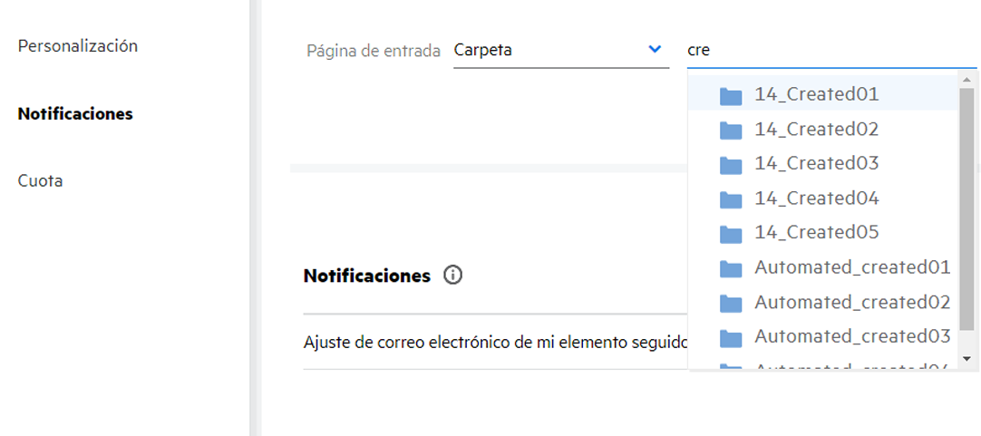 Directorio personal del usuario: muestra los archivos y las carpetas del sistema de archivos de su organización.