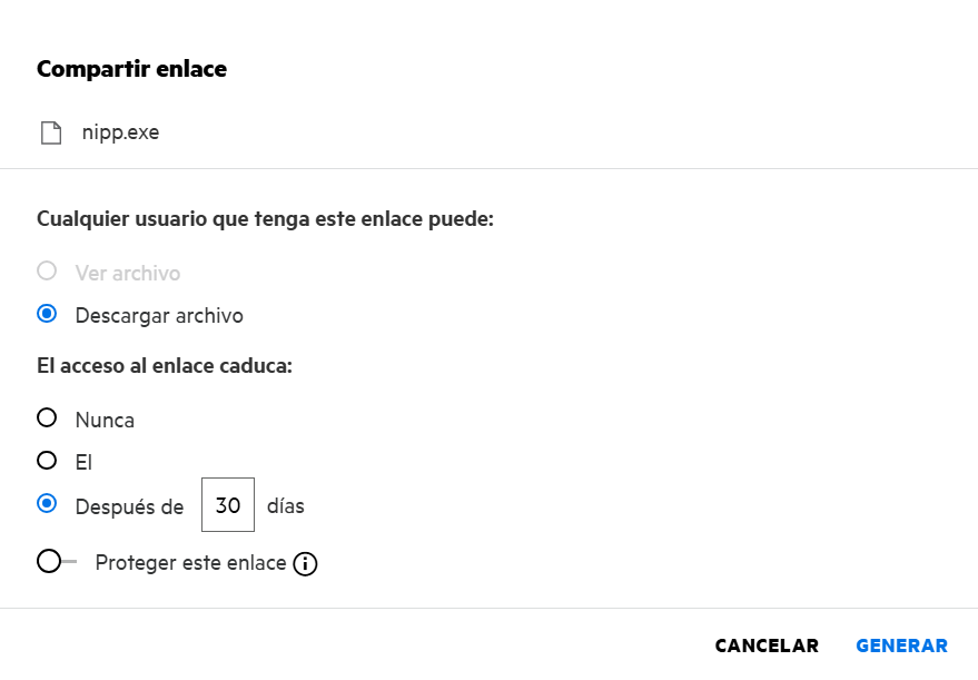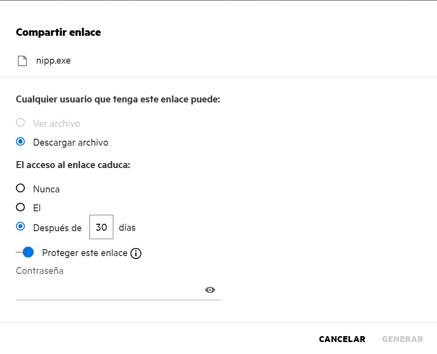 ¿Cómo se genera un enlace para compartir normal o uno protegido por contraseña?