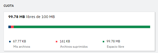 El color azul indica el espacio consumido por los archivos guardados en el área Mis archivos.