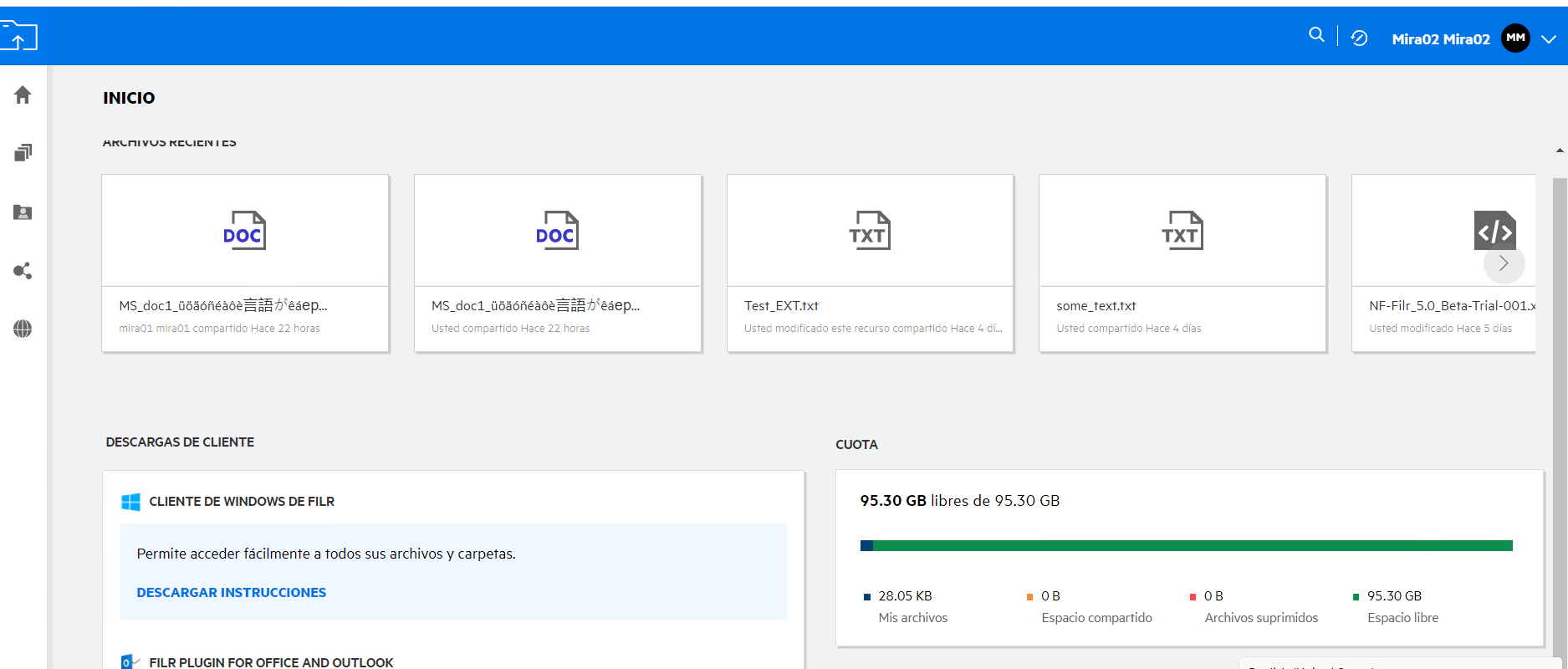 ARCHIVOS RECIENTES: por defecto, se muestran los archivos a los que accede el usuario que ha entrado a la sesión.