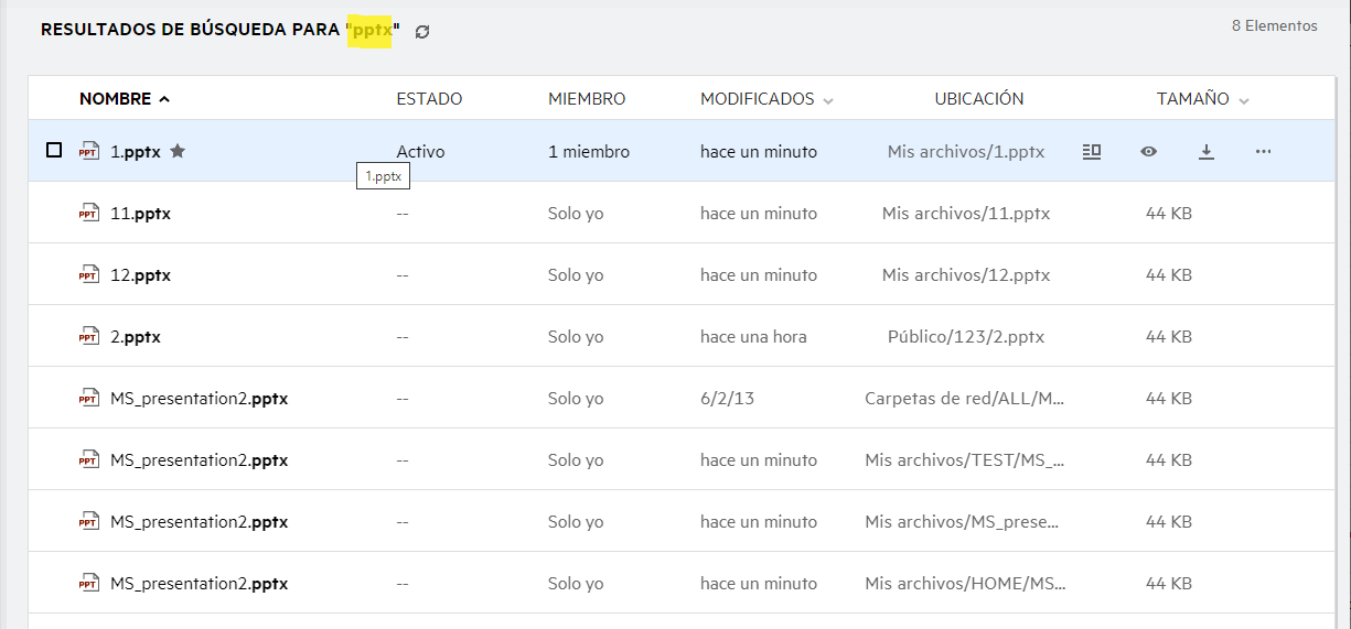 Todos sus archivos y carpetas están disponibles en una única ubicación. En esta sección, se muestran los elementos que ha cargado en Filr o que comparte.