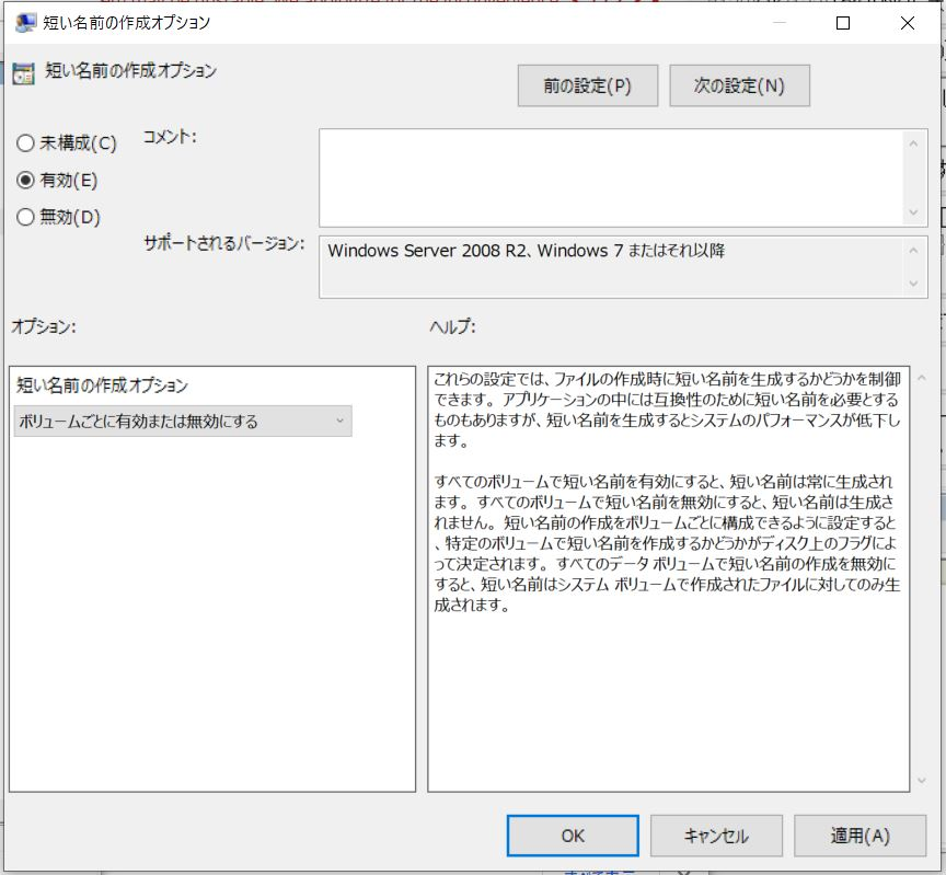 [NTFSのロングパスを有効にする]をダブルクリックします。