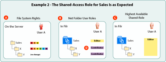 Filr assigns User A the Editor user role for the Sales Net Folder. |