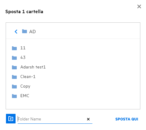 Selezionare l'ubicazione di destinazione, quindi fare clic su Move Here (Sposta qui). In alternativa, è possibile creare una nuova cartella facendo clic sull'icona della cartella nell'angolo in basso a sinistra della finestra, immettendo il nome della cartella e facendo clic su Move Here (Sposta qui).