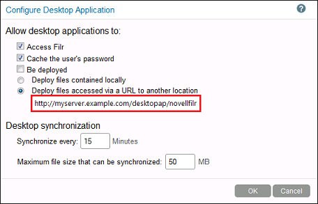 Although you can specify that the clients be downloaded from the local appliance, Micro Focus recommends hosting the Filr desktop applications on a separate web server, as documented in Section 7.0, Hosting Desktop Application Installation Files on a Separate Server.
