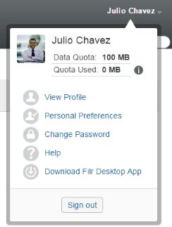 Click your user name in the upper right corner of any Filr page, then click View Profile.