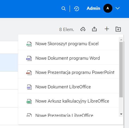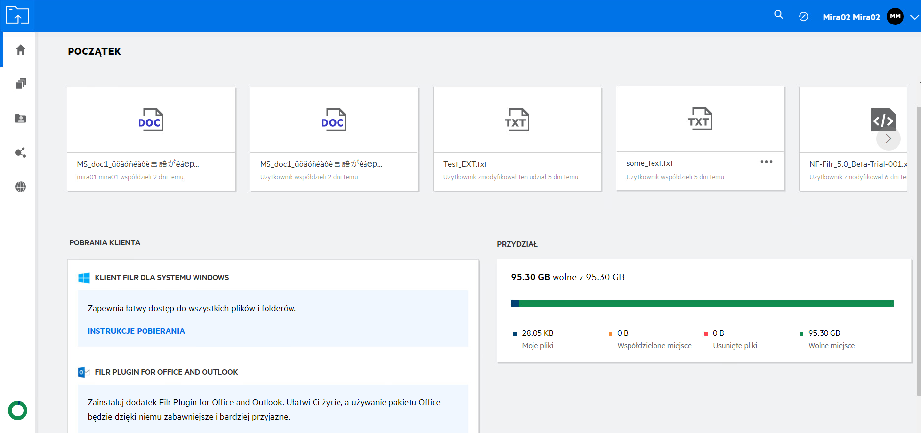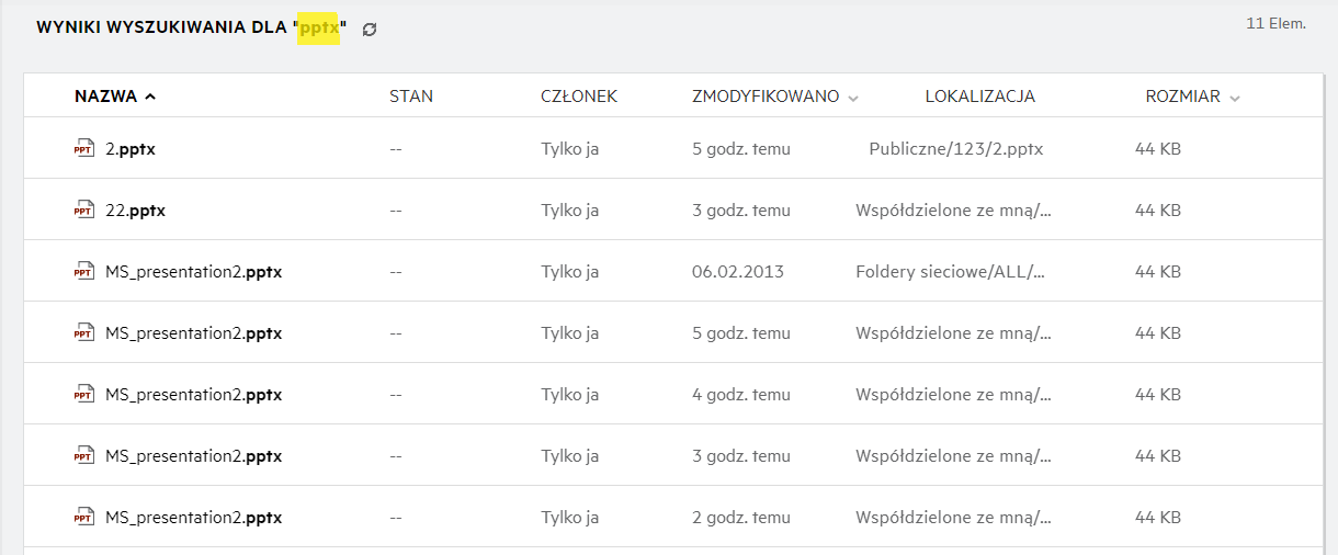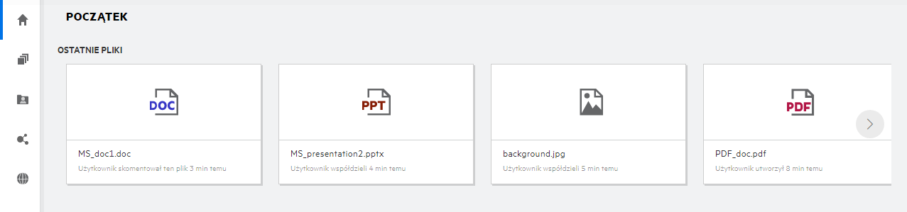OSTATNIE PLIKI: Domyślnie jest to lista plików, do których uzyskał dostęp zalogowany użytkownik.