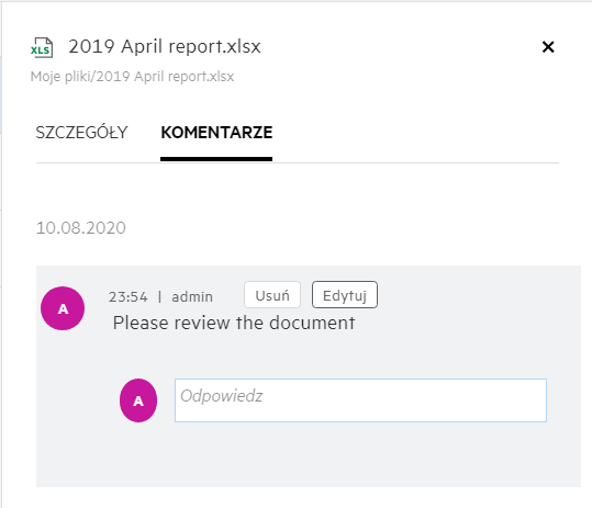 Łącze współdzielenia: Plik można współdzielić wtórnie przy użyciu łącza współdzielenia.