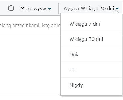 Wygasa: Data wygasania udziału. Po tej dacie nie będziesz mieć dostępu do współdzielonego elementu.