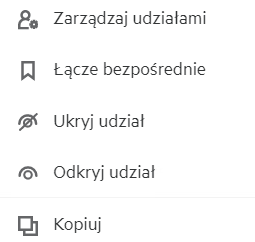 Aby cofnąć współdzielenie pliku, możesz wybrać opcję Zatrzymaj współdzielenie z menu Więcej czynności.