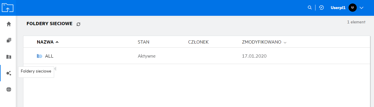 Aby wyświetlić obszar Foldery sieciowe, kliknij ikonę