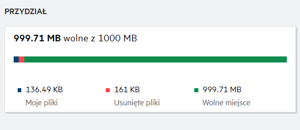 Tylko pliki wliczają się do przydziału danych. Puste foldery i pliki w folderach sieciowych nie będą liczone do przydziału danych użytkownika.