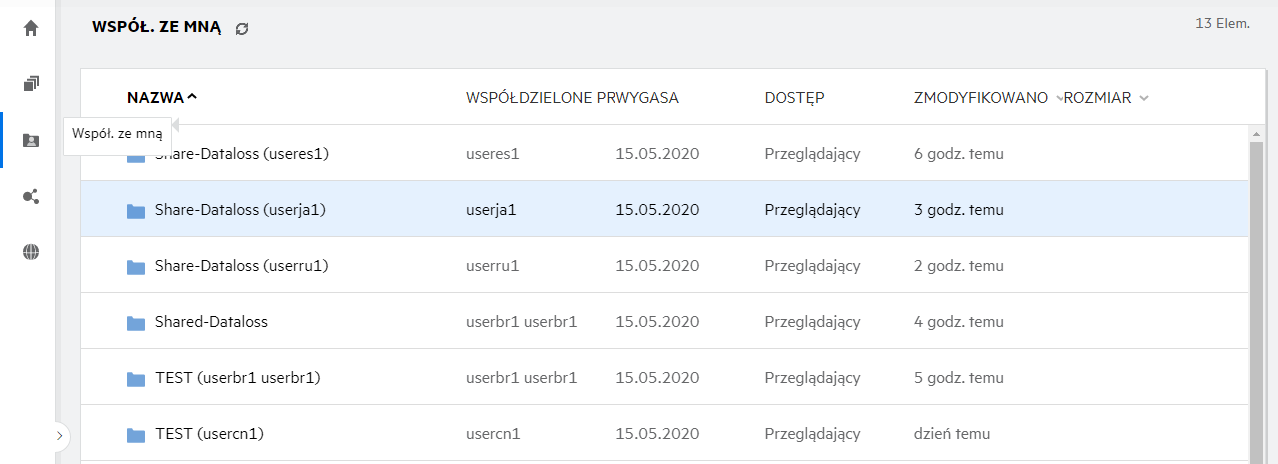 w okienku po lewej. Zawiera listę plików i folderów, które współdzielą z Tobą inni użytkownicy.