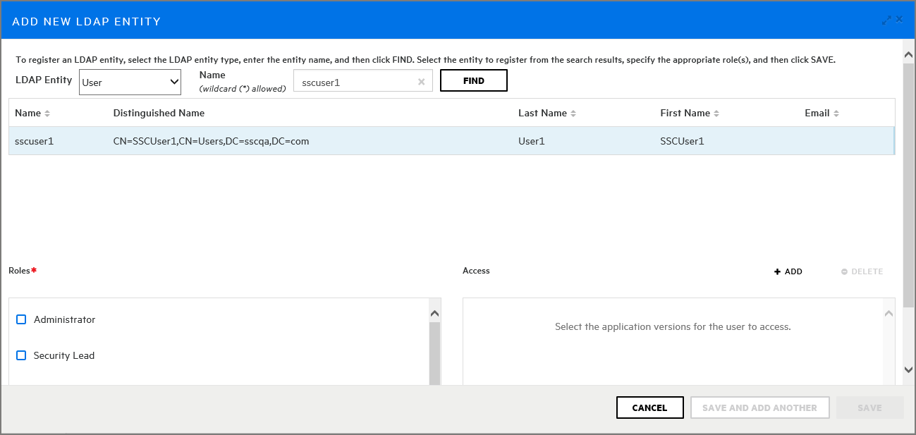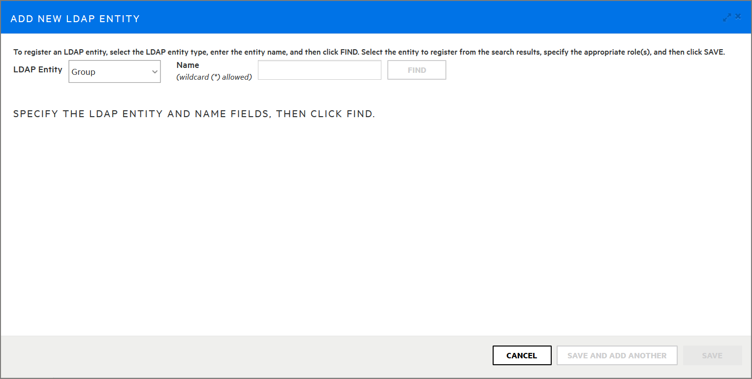To save your changes and close the Add New LDAP Entity dialog box, click SAVE.