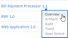 On the Dashboard, hover your cursor over the version number of the application of interest, and then select Overview.