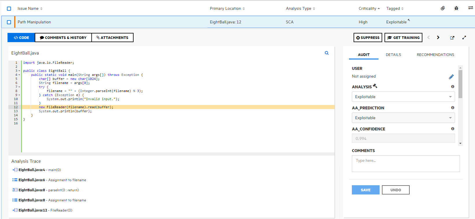 - AA_PREDICTION - Exploitability level that Audit Assistant assigned to the issue.
