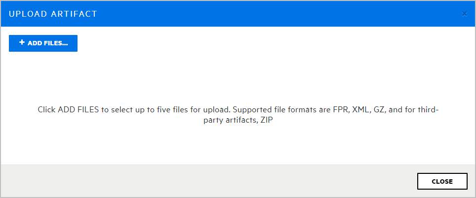 In the UPLOAD ARTIFACT dialog box, click + ADD FILES.