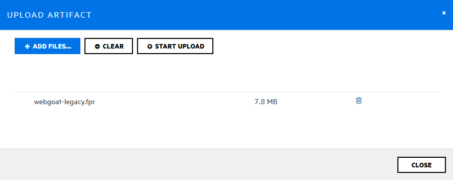 Important! To upload third-party artifacts, you must have the correct parser configured. For information, see Adding and Managing Parser Plugins.