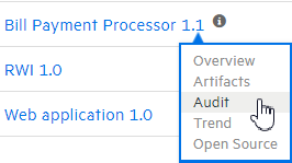 On the Dashboard, hover your cursor over the version number of the application of interest, and then select Audit.