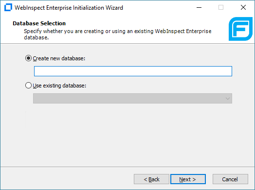 Creating a new Fortify WebInspect Enterprise database or updating an existing one as needed
