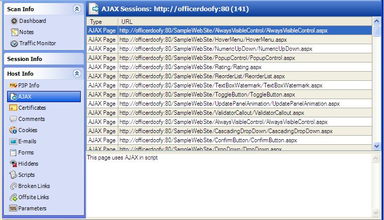 If you select this option, Fortify WebInspect displays all pages containing an AJAX engine, as well as the AJAX requests.