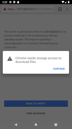 A prompt requests storage access to download files.