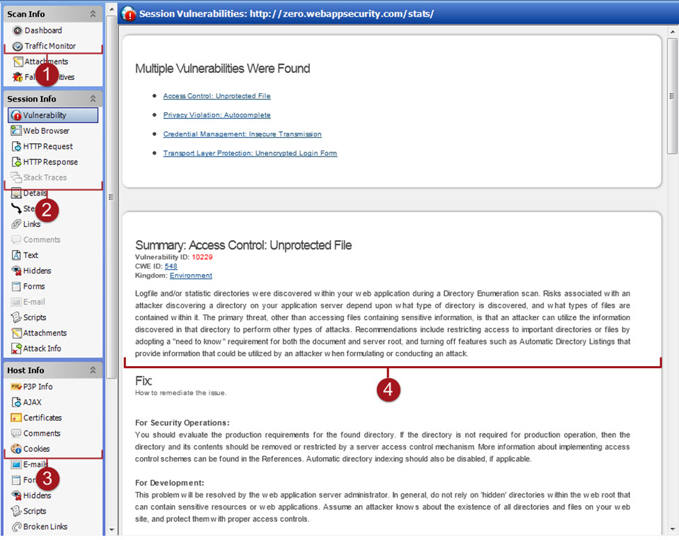 Tip: If you follow a link when viewing the vulnerability information, click the highlighted session in the navigation pane to return.
