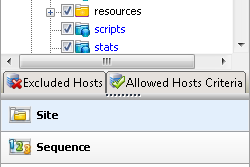 Site view also contains two pop-up tabs: Excluded Hosts and Allowed Hosts Criteria.