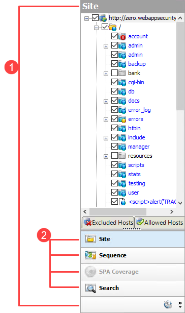 | 1 | Add to scan – Adding a host to the scan creates a node in the site tree representing the host root directory. Fortify WebInspect will scan that session. |