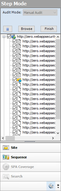 A manual scan (also referred to as Step Mode) is a Basic Scan option that allows you to navigate manually to whatever sections of your application you choose to visit, using TruClient with Firefox. It does not crawl the entire site, but records information only about those resources that you encounter while manually navigating the site. This feature is used most often to enter a site through a Web form logon page or to define a discrete subset or portion of the application that you want to investigate. Once you finish navigating through the site, you can audit the results to assess the security vulnerabilities related to that portion of the site that you recorded.