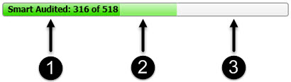 Number of sessions audited / total number of sessions to audit. The total number includes all checks except those pertaining to server type, which are handled by smart audit. |