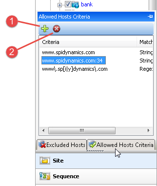 | 1 | Add Allowed Host Criteria – If you add an entry, OpenText DAST will include in the scan any subsequent links it encounters to hosts that match the criteria. However, if you specify a host after OpenText DAST has already scanned the only resource containing a link to that host, the added host will not be scanned. |