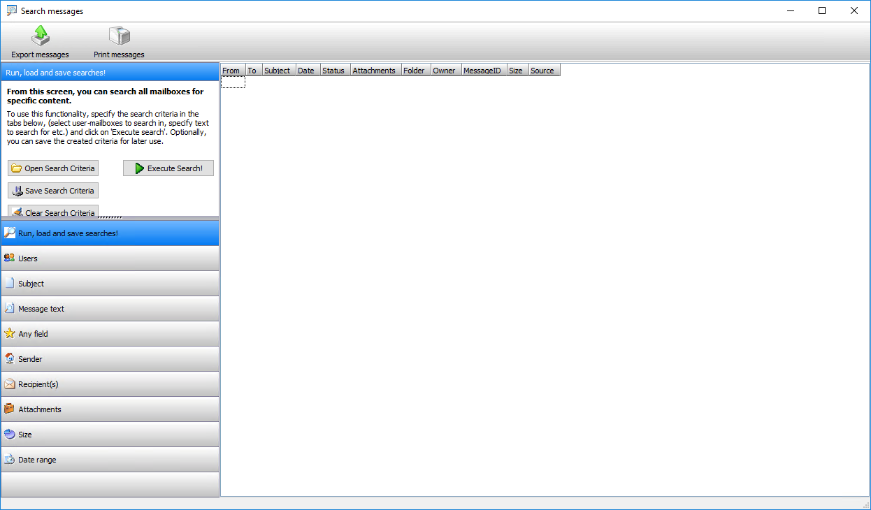 From this screen, administrators can search for any content, attachment or element of any e-mail.
