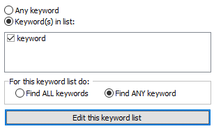 If we are adding a keyword for a message text search. Click on the Edit the keyword list button to open the keyword list menu.