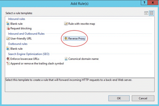 2. Wählen Sie die Aktion Add Rule(s) (Regeln hinzufügen) aus, und fügen Sie eine Regel für den Reverseproxy hinzu.