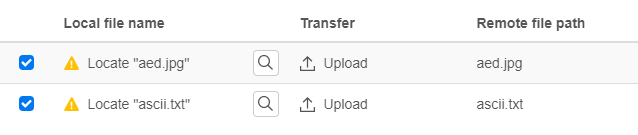 Due to browser requirements, you need to specify the location of all files that you want to upload. Locate files as needed using the Search icon. Those files are easily identified with a yellow icon as such: