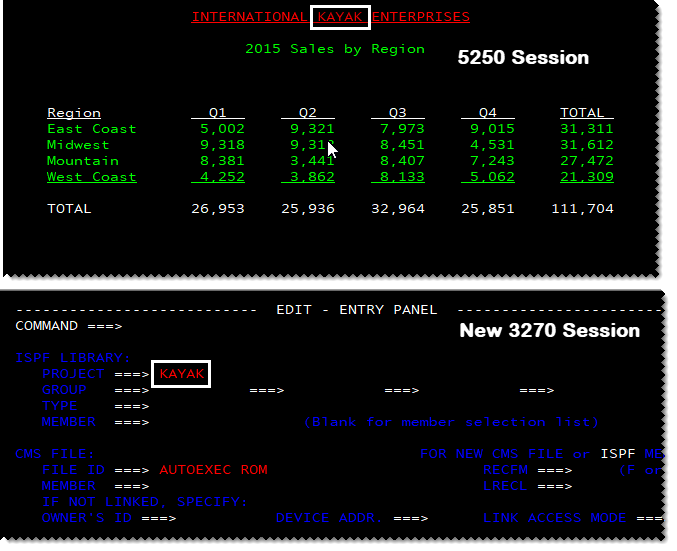 If you prefer to run macros in pre-configured sessions instead of creating your own sessions, you can download the VBA Sample Sessions and open the copy-data-between-terminal-sessions.rd5x (IBM) and the copy-data-between-terminal-sessions.rdox (Open Systems) files. The download package contains everything you need to run the macros in these files. See Download the VBA Sample Sessions.