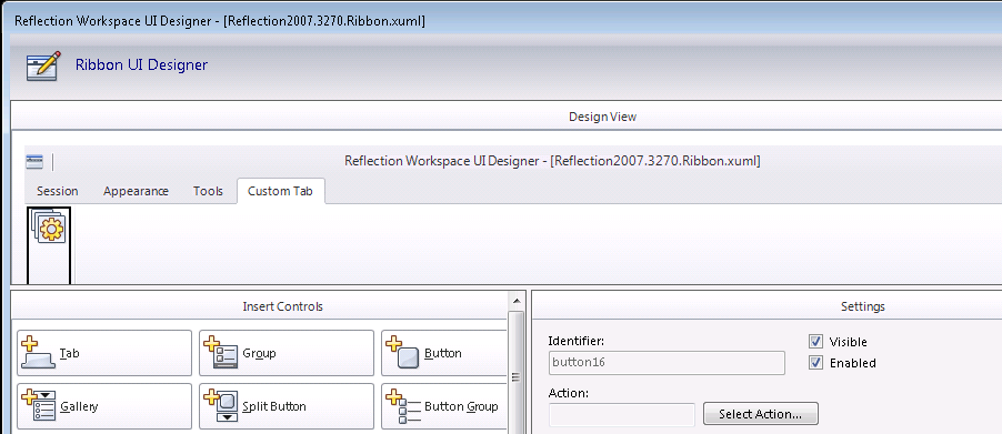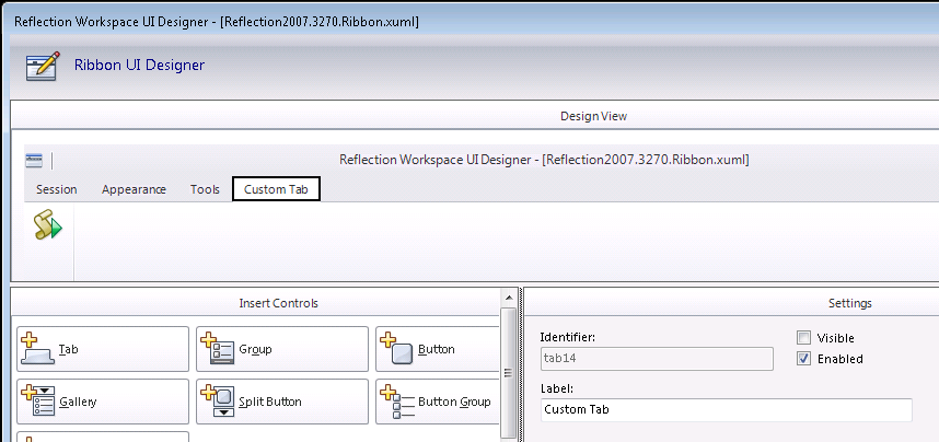 10. Back in the UI Designer, click OK and then enter the name of the new Ribbon (.xuml) file.