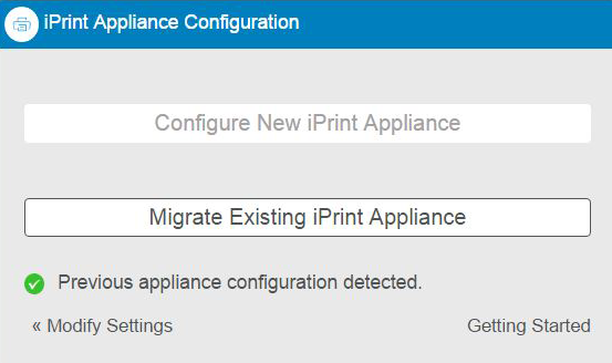 The configuration file of the previous appliance is renamed as previous_iprintconfig.zip.