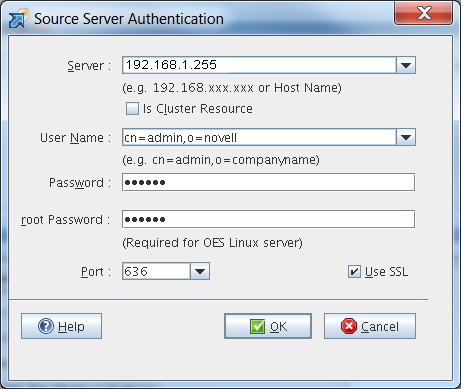If the source server is OES 2 SP3, OES 11, or OES, specify the password for authentication in the root Password field.
