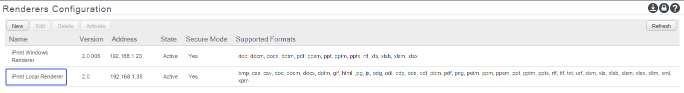 On the Renderers Configuration page, select the iPrint Local Renderer, then click Edit.