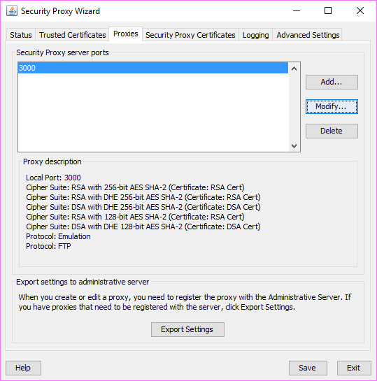 Return to the Proxies tab and click Export Settings to export the settings to the Administrative Server.